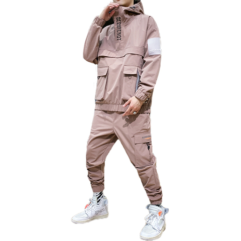 Gola com capuz carga terno primavera hip hop logotipo popular solto e grande função dos homens casuais de esportes desgaste